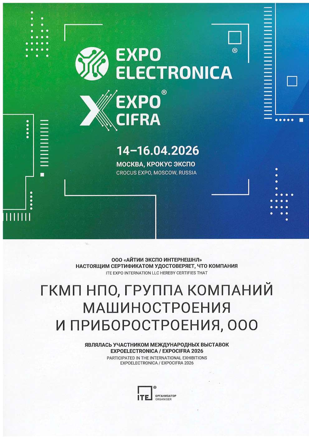 Диплом за участие в выставке "ExpoElectronica/ExpoCifra 2026"