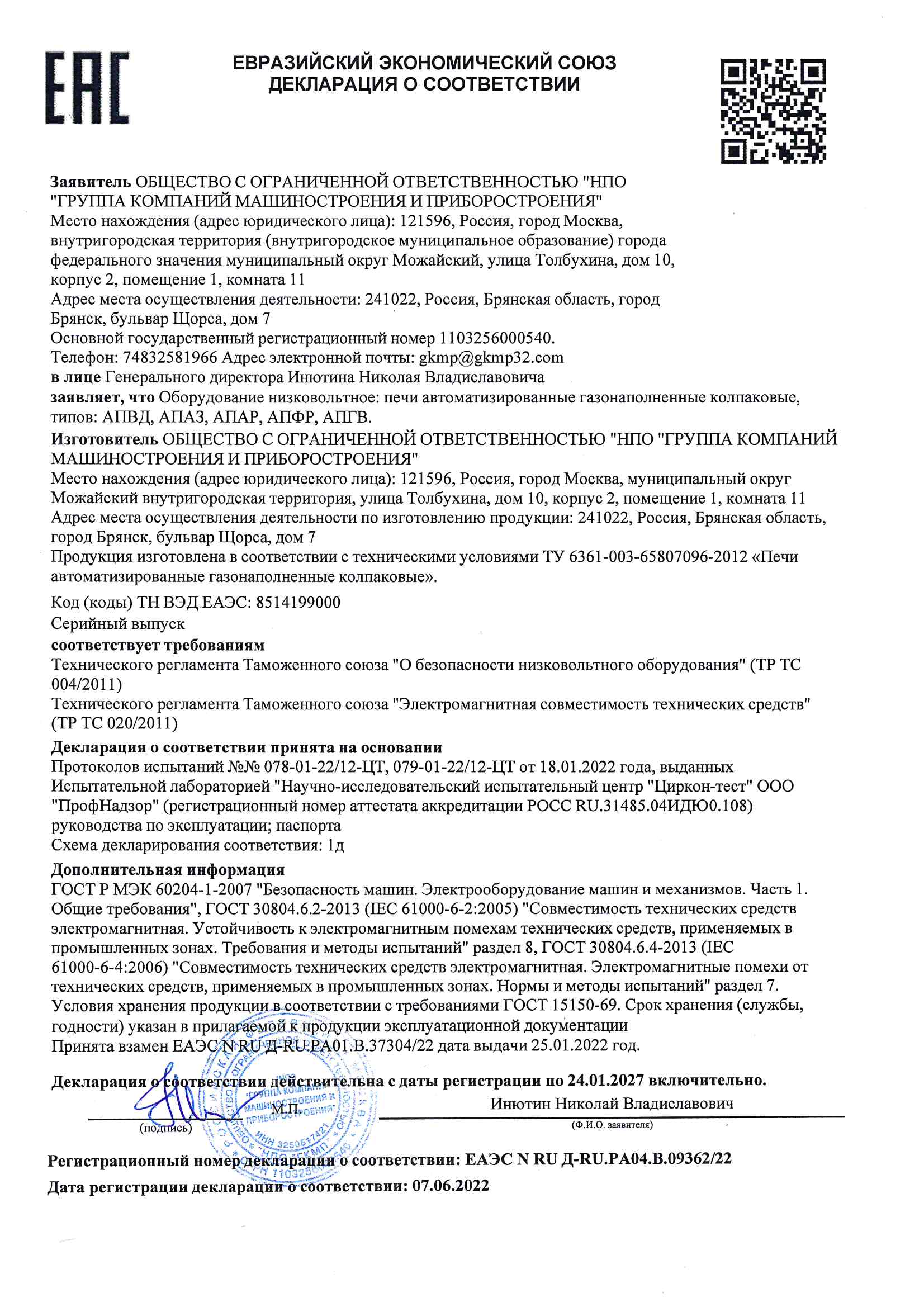 Декларация ТР ТС на АПВД, АПАЗ, АПАР, АПФР, АПГВ