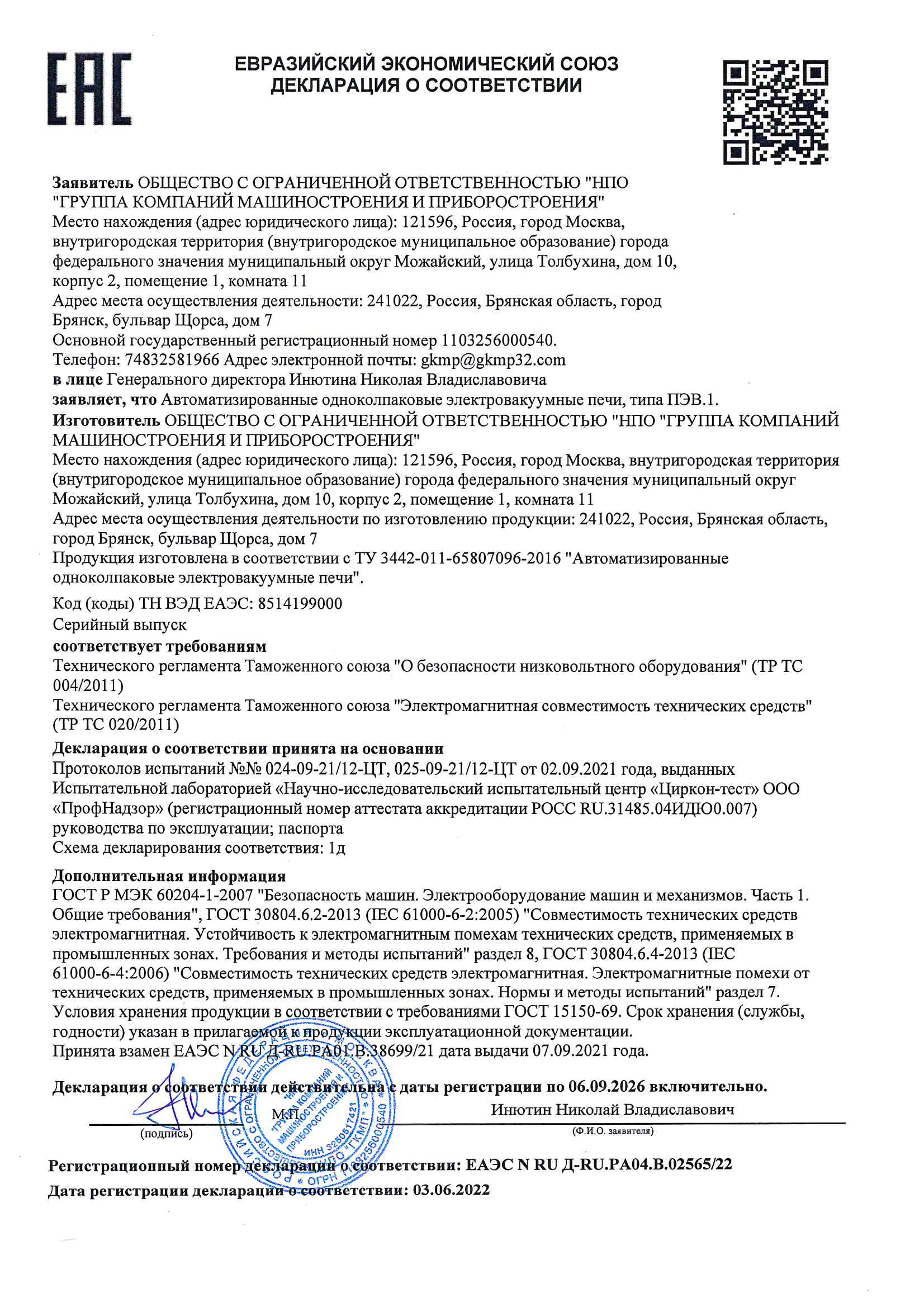 Декларация ТР ТС на МРГ рабочая среда группы 2 (газ-пар) до 10,5 МПа