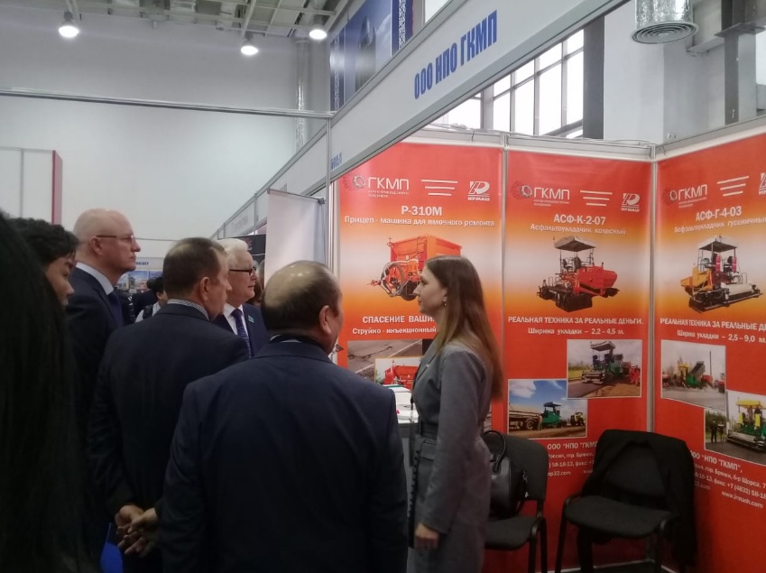 Продукция завода была презентована делегации ТОО «Казавтодор» и представителям его филиалов. Интерес руководителей вызвали гусеничные асфальтоукладчики АСФ-Г-3-01 и АСФ-Г-4-04 разработанные в 2018 году при содействии Минпромторга РФ. Внимание посетителей выставки привлекла Машина для ямочного ремонта методом пневмонабрызга Р-310М. Дорожники отметили ее удобство в эксплуатации и экономное расходование материалов.