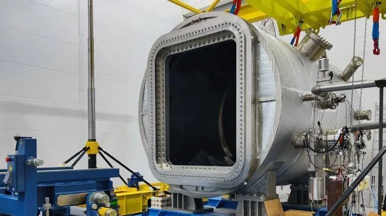 Например, размер нашей вакуумной камеры составляет 6 м в длину и 3,5 м в диаметре. Требования по плоскостности ответного фланца камеры очень высокие (0,3 мм на всю плоскость фланца) — для того чтобы порт-плаг можно было беспрепятственно поместить в камеру и обеспечить герметичное соединение для проведения климатических и функциональных испытаний. Всего наши стенды должны испытать 46 диагностических порт-плагов, которые будут работать с плазмой токамака ИТЭР.