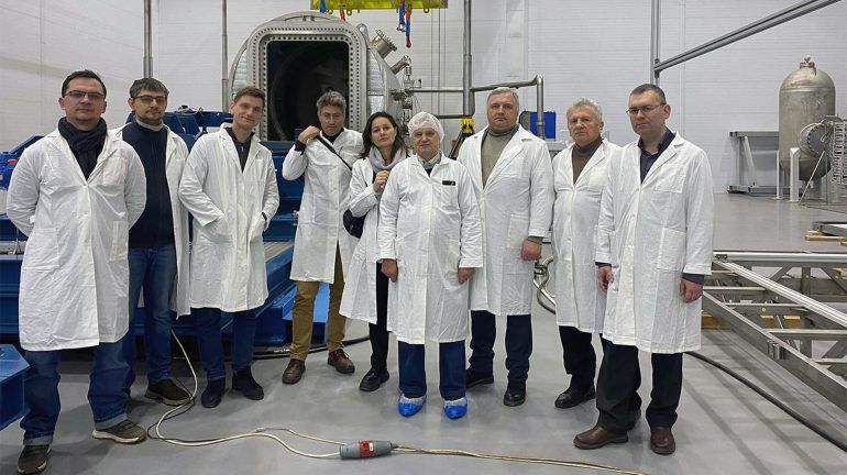 На фото: Команда предприятия ООО "НПО "ГКМП" и технический руководитель проекта PPTF Международной организации ИТЭР Тьерри Серизье (четвертый слева)