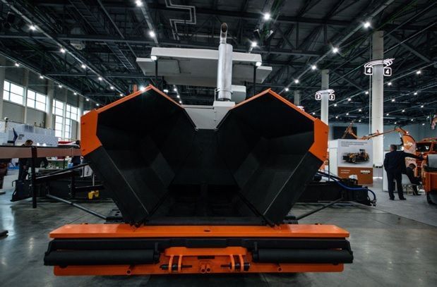Главным объектом внимания на выставке-форуме стал флагман российского производства отечественная разработка гусеничный асфальтоукладчик АСФ-Г-4-05.