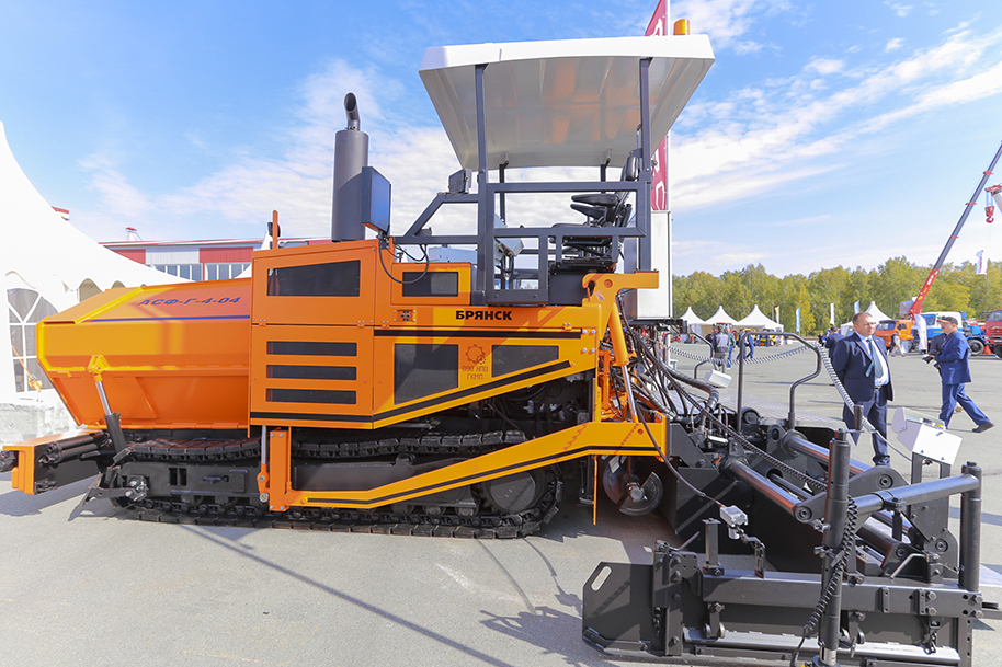 Брянское предприятие ООО «НПО «ГКМП» представило на выставке одну из своих новинок - асфальтоукладчик с электроподогревом рабочей плиты АСФ-Г-4-04. Машина позволяет укладывать асфальтобетон шириной до 9 м. Асфальтоукладчик разработан в рамках реализации долгосрочной программы предприятия, направленной на разработку модельного ряда асфальтоукладчиков всех типоразмеров с электроподогревом рабочих плит.