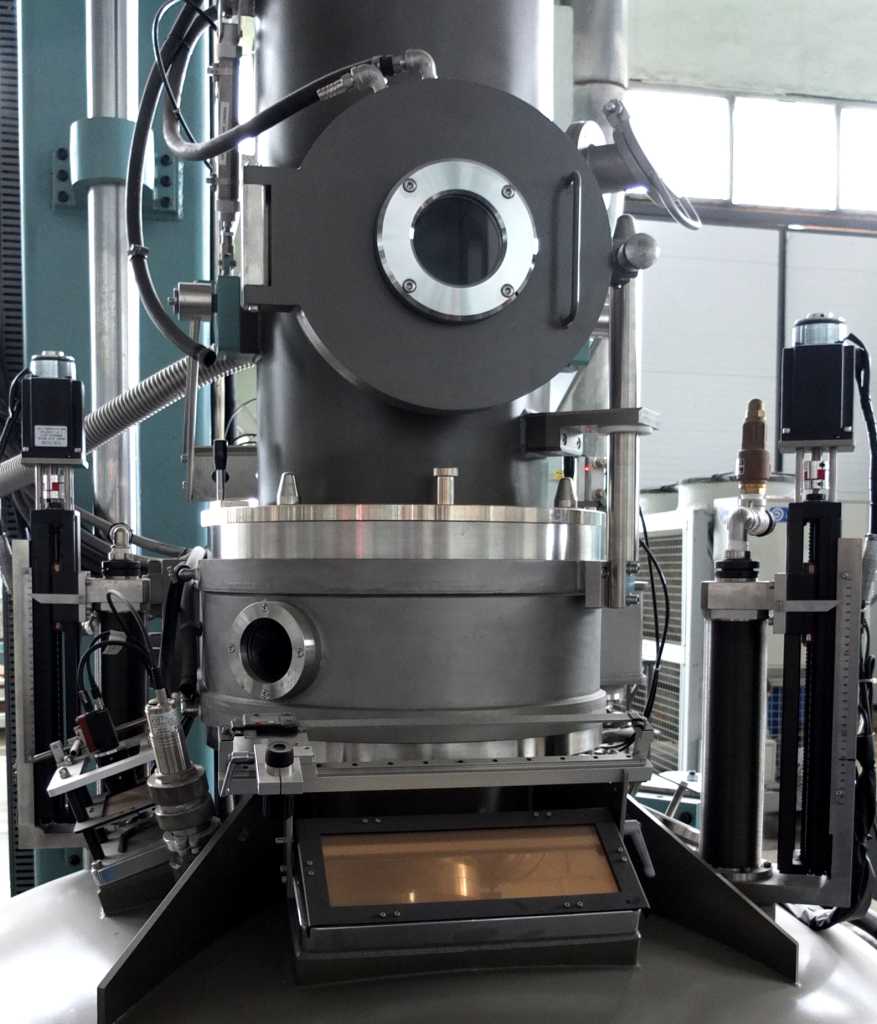 Главный насос – вакуумный агрегат, включающий в себя насос Рутса и пластинчато-роторный насос, выполнен в одном корпусе, включая блок управления. Для поддержания требуемого давления в рабочей камере при постоянном потоке газа, вакуумный агрегат регулирует скорость откачки изменяя частоту вращения.Перед вакуумным агрегатом устанавливается специальный пылевой фильтр с функцией самоочистки, что позволяет проводить долгие процессы (до 400 часов) без существенной потери скорости откачки.